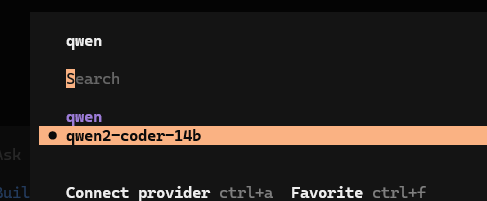 /connect 입력 - "qwen"을 입력하여 "qwen2-coder-14b" 모델을 찾습니다.