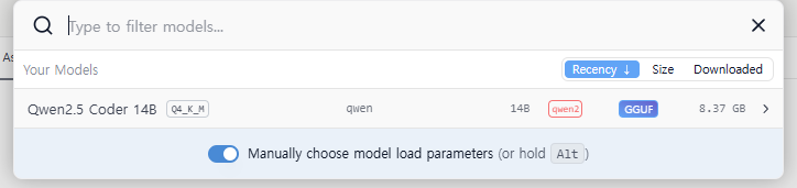- 다운로드가 완료되면 "Download" 버튼의 영역에 "Load Model" 버튼이 표시됩니다. 클릭해서 해당 모델을 Load 합니다.